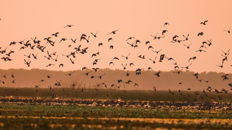 During the flooding season from August to November, Tram Chim opens tour routes that combine experiences such as fishing, net setting, and rat catching. This is also considered the breeding season for birds, as the arrival of water brings an abundance of fish and shrimp, serving as food for the birds.